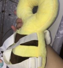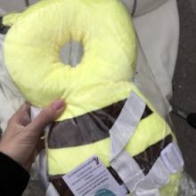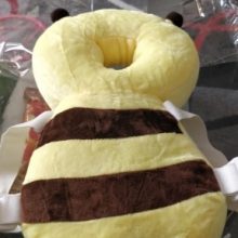This little bee backpack has literally been a life saver. My 10 month old has been wearing it consistently for the past month and a half and it has saved him from smacking the back of his head on our tile floors too many times to count. He was a little interested in trying to pull it off when we first put it on, but now he wears it all the time and doesn’t seem to even notice it is there. Such a simple, cheap, and effective solution for a common baby issue.