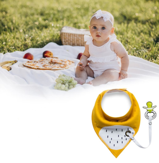 These products are not only adorable but are of great quality! The bibs are made out of great material and fit perfectly! Very soft and durable. The pacifier clips are great! The metal clasp is very strong and doesn't slip off easily like some do (very important when you have twin boys constantly trying to steal each other's binkies! haha!)