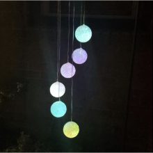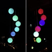 Cute solar chimes. I hang it by my window and use it as a night light. It goes on when it gets dark and stay on for about 3 hours. It is very relaxing watching it changing color when laying on bed.