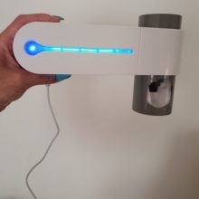 Very cool antibacterial holder. Beautiful design! Holds everyones toothbrush and sanitizes them effortlessly. Great product to save counter space & have a clean toothbrush. Very great product!